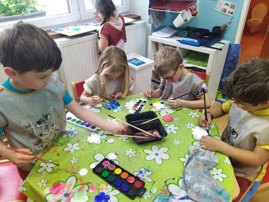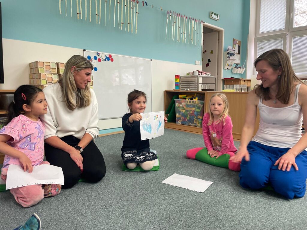 závěr ze schůzky – Ohledně zalévání květin se nám bohužel nepovedlo vymyslet efektivní způsob. Vodní prvek na zahradu všechny zaujal, jen jsme si dali čas zamyslet se nad provedením a znovuvyužitelností vody. Zeptali jsme se dětí a ty nám namalovali různé návrhy, jak by mohl vodní prvek vypadat a co by se jim na zahradě líbilo. Spotřebu vody ukážeme dětem názorně propočtenou na jedno dítě za den. Na otevírání studánek nám pomoc nabídlo hned několik rodičů. Domluvili jsme se na stezce s vodními úkoly.