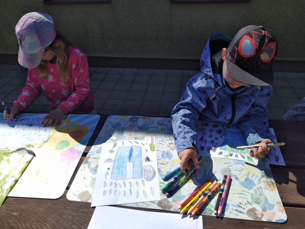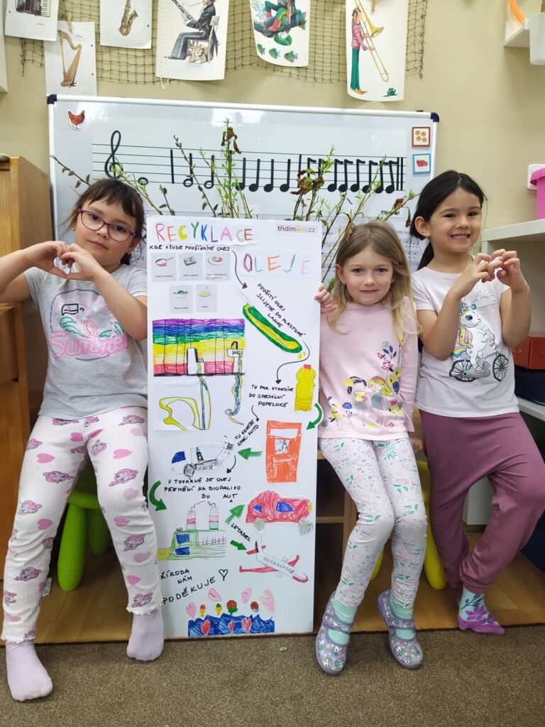 Školková akce, která nás dále čekala, bylo vítání jara. Na podnět jednoho z rodičů v ekotýmu jsme se rozhodli informovat veřejnost o problematice oleje v odpadním potrubí. S dětmi jsme si o oleji povídali a narazili jsme na videa od společnosti tridimolej.cz, kde jsme si ukazovali, co se může stát, když olej nalijeme do záchodu nebo do odpadu v kuchyni. Společně s dětmi jsme vytvořili názorný obrázkový plakát, který jsme na akci Vítání jara prezentovali a poté ho umístili do místní knihovny. Také jsme společně s dospěláky nechali otisknout text do místního zpravodaje, abychom informovali co nejširší veřejnost.