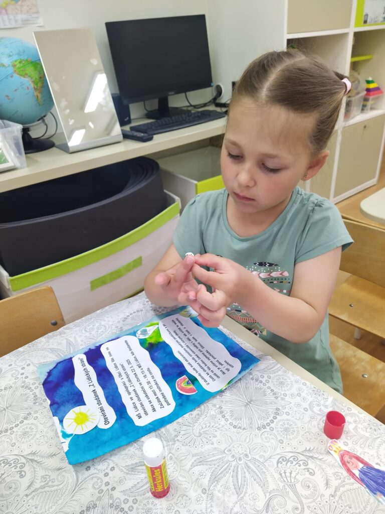 Na stezku jsme měli připravené i vyrábění studánkové víly z papíru. Vzhledem k deštivému počasí jsme si studánkovou vílu dotvořili během dalšího týdne ve školce a pak ji s třídou koťátek odnesli do místní knihovny.